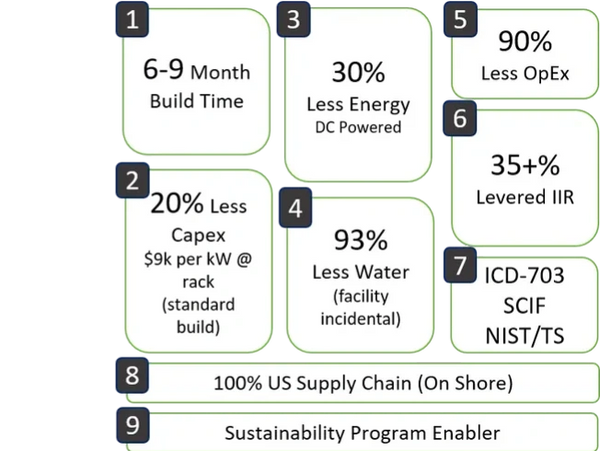 Tier IV DevCo delivers turnkey, modular data centers with 5 to 500-Megawatt (MW) capacity, combining pre-engineered designs, vetted real estate, energy solutions, fiber, permitting, and financing into a single package.